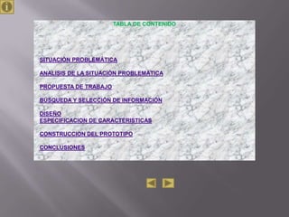 Este documento presenta un proyecto para construir una grúa hidráulica utilizando materiales reciclables. Explica la situación problemática que motiva el proyecto, analiza la situación, propone el trabajo, describe la búsqueda de información, el diseño, las especificaciones y la construcción del prototipo. Concluye que el proyecto permite aplicar conocimientos sobre hidráulica y mejorar la calidad de vida mediante el desarrollo de herramientas útiles.