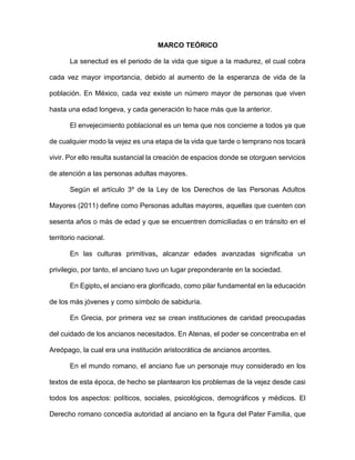 Este documento presenta un proyecto para un asilo llamado "Hogar de ancianos El paraíso". Describe el marco teórico sobre el envejecimiento y los asilos para ancianos. Detalla los objetivos, misión, visión y valores del asilo. Además, explica las características del asilo, incluyendo las habitaciones, servicios médicos, de enfermería, fisioterapia, psicológicos y otros servicios que ofrecerá para el cuidado de las personas mayores.