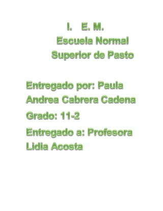 El documento habla sobre la indisciplina en el contexto escolar. La indisciplina implica falta de comportamiento esperado como charlar o jugar en clase en vez de prestar atención. Las causas de la indisciplina incluyen factores como la inmadurez de los estudiantes, influencias sociales negativas, y problemas en el método de enseñanza. La indisciplina tiene consecuencias como dificultades en el aprendizaje y bajo rendimiento académico.
