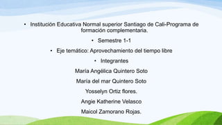 Este proyecto busca implementar la lectura recreativa en niños y niñas de transición entre 5 y 6 años como una forma de aprovechar su tiempo libre. Se proponen actividades narrativas como contar cuentos y fábulas, así como crear una "oficina de correos" y un libro para compartir experiencias a través de la tradición oral. El objetivo es fomentar valores y desarrollar habilidades a través de la lectura lúdica.