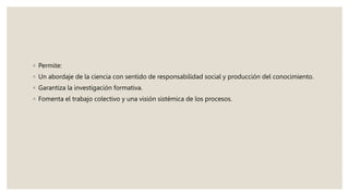 Este documento presenta las secciones y elementos requeridos para un proyecto integrador. El proyecto permite un enfoque de la ciencia con responsabilidad social y producción de conocimiento, garantiza la investigación formativa y fomenta el trabajo colectivo. Incluye secciones como identificación del proyecto, resumen, introducción, desarrollo con planteamiento del problema, objetivos, marco teórico, metodología, resultados, conclusiones y bibliografía.