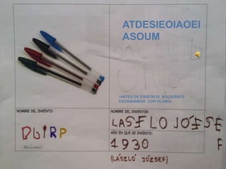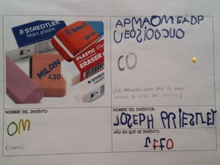 Este documento presenta breves informaciones sobre inventos e inventores relacionados con la ciencia a lo largo de la historia. Se mencionan la pluma y el bolígrafo, la radio, Ada Lovelace como la primera programadora en 1843, el primer lavaplatos de madera en 1893 inventado por Josephine Cochrane, y el libro electrónico inventado por la maestra Angela Ruiz Robles. También se hace referencia a Henry Mill en 1714.