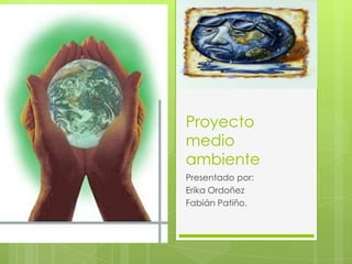 Este documento presenta una propuesta para mejorar el medio ambiente en el colegio Pablo Emilio Camacho Perea. La propuesta busca reducir la basura en el colegio a través de charlas de concientización ambiental para los estudiantes y asignando a cada salón la responsabilidad de proveer bolsas para basura mensualmente. El objetivo general es lograr que el colegio se vea más limpio y el medio ambiente sea más sano.