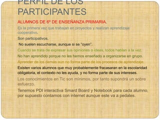 Este documento describe un proyecto para mejorar el patio de una escuela primaria. Los estudiantes de sexto grado realizarán un diagnóstico de las condiciones actuales del patio y propondrán mejoras a los juegos existentes y nuevos juegos. Crearán guías escritas y videos para explicar los juegos y enseñarlos a otros estudiantes. El proyecto abarcará varias áreas académicas y requerirá la colaboración de estudiantes, maestros y la comunidad.
