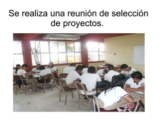 Se realizó una reunión para seleccionar proyectos escolares, incluyendo trabajos sobre impacto tecnológico, estructura celular, lenguas extranjeras, ética y cívica. Finalmente, se creó un mural que integró aspectos de varias disciplinas escolares.