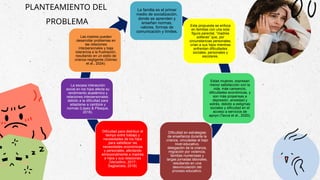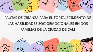 El documento aborda pautas de crianza para fortalecer las habilidades socioemocionales de familias monoparentales en Cali, centrando su atención en madres solteras que enfrentan dificultades sociales y económicas. Se propone un conjunto de actividades para mejorar la comunicación, establecer límites claros y crear un sistema de apoyo entre los miembros de la familia, lo que facilitará la resolución de conflictos y fortalecerá el bienestar emocional de los hijos. Se enfatiza la importancia de gestionar recursos emocionales y sociales para mejorar el rendimiento académico y las relaciones interpersonales en un contexto familiar seguro y comprensivo.