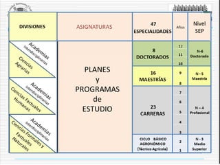 El documento propone la transformación de la Universidad Autónoma Chapingo (UACH) hacia una estructura divisional-matricial que elimine la burocracia y fragmentación actuales, favoreciendo la interdisciplinariedad y el enfoque académico. Se argumenta que esta transición es necesaria para dejar atrás una herencia política que ha restringido el desarrollo académico durante 40 años. Se sugieren mejoras en la formación de profesionales integrales, la eficiencia en el uso de recursos y una mayor interacción entre estudiantes y académicos.