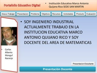 Este documento presenta un proyecto educativo desarrollado por un docente de matemáticas en una institución educativa. El proyecto busca diseñar materiales digitales para motivar a los estudiantes sobre sus derechos sexuales y reproductivos, con el objetivo de reducir la deserción escolar debido a factores como el embarazo adolescente. El proyecto incluye talleres y videos informativos para los estudiantes.