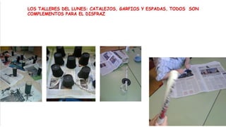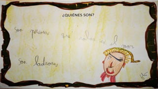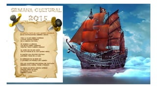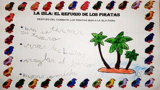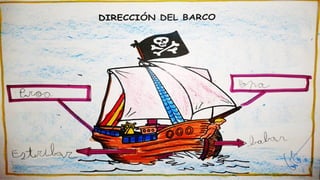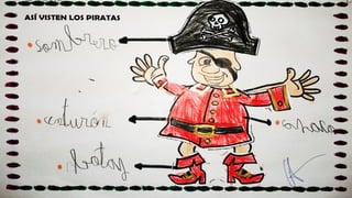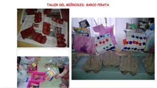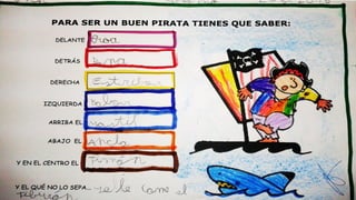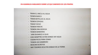 Este documento resume las actividades de un proyecto sobre piratas realizado por un grupo de niños de educación infantil. A lo largo del proyecto, los niños aprendieron sobre la vida, barcos, banderas y costumbres de los piratas a través de discusiones, dibujos, mapas conceptuales, experimentos, decoración de pasillos y diseño de su propia bandera pirata.
