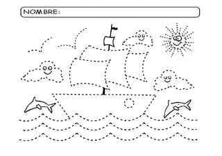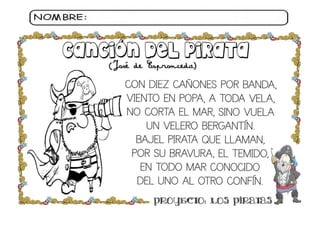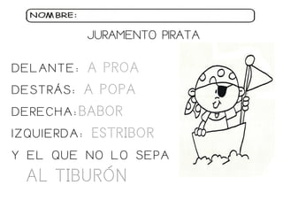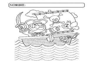 El documento contiene actividades creativas y educativas relacionadas con piratas, como colorear, dibujar y completar tareas. Incluye instrucciones para decorar imágenes, ayudar a un pirata a alcanzar el tesoro y realizar nudos marineros. El enfoque está en la interacción y el aprendizaje lúdico sobre el tema de los piratas.