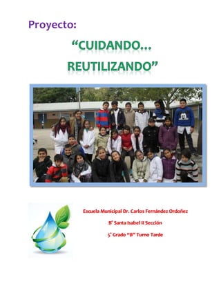 El proyecto consiste en diseñar e implementar un sistema de recolección de agua de lluvia en una escuela primaria para regar una huerta escolar. Los estudiantes escribieron una canción, instalaron un sistema de recolección de agua, y presentaron el proyecto en una feria escolar para promover el uso responsable del agua entre la comunidad.