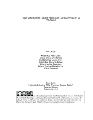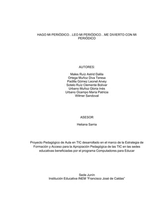 Este documento presenta un proyecto para mejorar los procesos de lectura y escritura de los estudiantes mediante la elaboración de un periódico mural escolar. El proyecto busca despertar el interés de los estudiantes por la lectura y escritura a través de actividades como la recopilación de noticias, entrevistas y artículos para el periódico. Se implementará un espacio dedicado al periódico y se organizarán a los estudiantes en equipos para las tareas de redacción, diseño y mantenimiento del periódico.