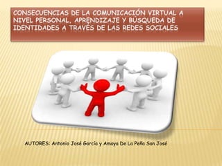 Este documento resume los efectos de la comunicación virtual en diferentes ámbitos como el psicológico, educativo, político-social y de negocios. Analiza conceptos como la adicción a internet, las redes sociales e identidad digital, y las comunidades virtuales y su aplicación al aprendizaje colaborativo de una segunda lengua.