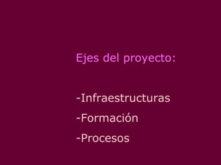 El documento describe el proyecto TIC de la escuela Karmengo Ama Eskola. El proyecto se centra en tres ejes: infraestructuras, formación y procesos. En infraestructuras, el objetivo es mejorar el equipamiento mediante la compra de ordenadores portátiles, pizarras digitales y cañones. También se busca conectar la escuela a la red y a Internet. En formación, se ofrecerán cursos para profesores, alumnos y familias para aprender a usar los nuevos recursos tecnológicos. En