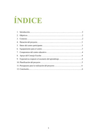 Este documento presenta un proyecto para introducir el uso de tabletas en un colegio rural durante el curso escolar 2013/2014. El proyecto capacitará a los profesores en el uso de las tabletas y proporcionará una tableta a cada estudiante. El objetivo es evaluar el impacto de las nuevas tecnologías en el aprendizaje y enseñanza. El consejo escolar apoyará el proyecto asegurando su ejecución y difundiendo los resultados.