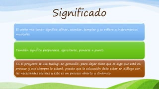 El proyecto Tuning busca mejorar la colaboración y calidad de la educación superior en Europa mediante la identificación de competencias y resultados de aprendizaje comunes en diferentes áreas temáticas. Tuning no tiene la intención de estandarizar currículos o limitar la autonomía académica, sino fomentar la transparencia y convergencia en la estructura educativa a través del diálogo. El enfoque en competencias genéricas y específicas a cada área promueve la transparencia, empleabilidad, aprendizaje permanente