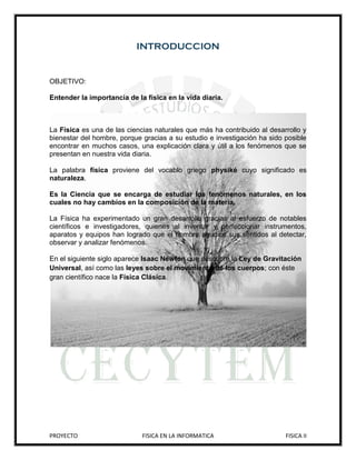 Este documento describe las propiedades físicas de los materiales utilizados en una computadora, incluyendo metales y plásticos. Explica que los metales son buenos conductores de calor y electricidad y tienen propiedades como maleabilidad y ductilidad. También describe las propiedades del silicio y su uso en procesadores. Finalmente, define los plásticos como polímeros sintéticos derivados del petróleo que pueden ser moldeados térmicamente.