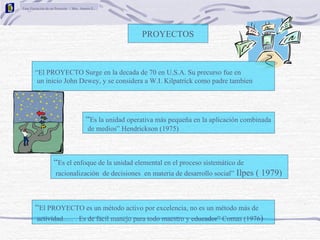 Este documento describe los componentes y fases clave de un proyecto pedagógico. Explica que un proyecto pedagógico permite mejorar la calidad de la enseñanza, integrar el currículo, y responder a problemas pedagógicos y de la comunidad. También describe los roles del director y docentes, así como los niveles y momentos de un proyecto, incluyendo la visión, misión, diagnóstico y plan de acción.