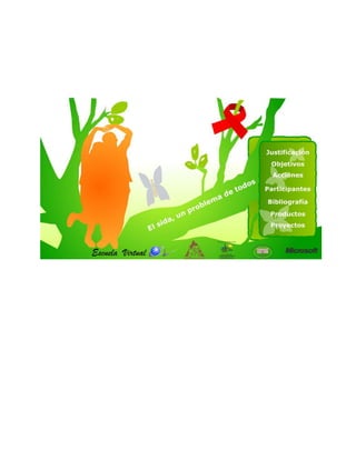 El documento trata sobre la justificación y los objetivos de implementar un proyecto educativo sobre el SIDA. Brevemente, el documento explica que el SIDA sigue siendo un problema grave de salud pública, especialmente en países con malas condiciones de vida y falta de educación. El proyecto busca informar a los estudiantes sobre el SIDA y prevenir su propagación a través de campañas de concientización.