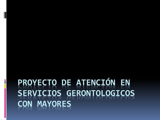 Este documento presenta un proyecto de atención en servicios gerontológicos con mayores. El proyecto busca atender las necesidades identificadas de las personas mayores en la comunidad a través de actividades y tareas específicas. El proyecto incluye secciones sobre la naturaleza, objetivos, metas, actividades, cronograma, recursos, responsabilidades, beneficiarios y evaluación del proyecto.