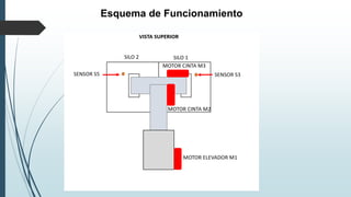Este documento proporciona información técnica sobre los componentes de instrumentación y control de un sistema, incluyendo sensores fotoeléctricos y inductivos de varias marcas, contactores, guardamotores, motores para elevador, cintas y lineal, así como esquemas eléctricos de fuerza, mando y programación ladder.
