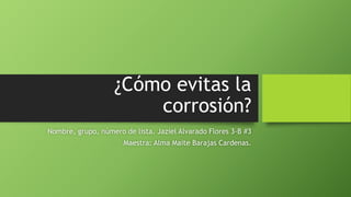 Este documento describe cómo evitar la corrosión a través de varios métodos. Explica que la corrosión es la reacción química o electroquímica de un metal con su ambiente. Luego enumera y explica diferentes métodos para controlar la corrosión como eliminar elementos corrosivos, usar materiales más resistentes, protección eléctrica y usar barreras entre el material y los elementos corrosivos.