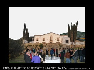 El documento describe varios proyectos de construcción en España, incluyendo un parque temático de deportes al aire libre en Sant Cebrià de Vallalta, la remodelación y ampliación de un hotel en Platja d'Aro, la rehabilitación de un edificio de viviendas en Barcelona, y un tanatorio, crematorio y columbario en Barcelona.