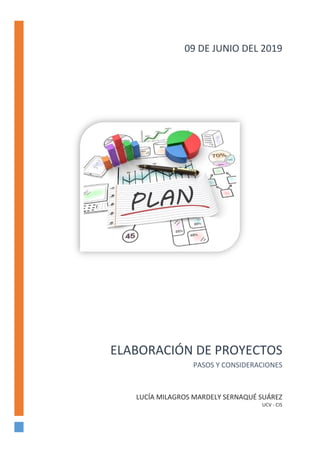 El documento detalla los pasos y consideraciones para la elaboración de proyectos, incluyendo definiciones, funciones, elementos básicos, tipos de proyectos y un esquema para su investigación. Se abordan aspectos como la formulación de problemas, objetivos, diseño de metodologías y la importancia de contar con recursos adecuados. Además, se discuten criterios y aspectos administrativos necesarios para la efectiva ejecución de proyectos.