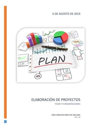 Este documento presenta los pasos y consideraciones para la elaboración de proyectos. Define un proyecto como la célula básica para organizar, ejecutar, financiar y controlar actividades de investigación científica dirigidas a lograr objetivos concretos. Explica que un proyecto debe contener elementos básicos como actividades y recursos, y puede ser de diferentes tipos como asociados a programas, no asociados a programas, institucionales o empresariales. Además, provee un esquema para la elaboración de proyectos de investig