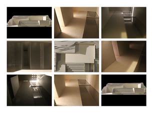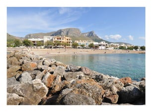 Este documento presenta tres proyectos de arquitectura realizados en Mallorca, España. El primer proyecto consiste en una torre de vigilancia para una playa. El segundo proyecto involucra la construcción de viviendas vacacionales en una parcela con desnivel. El tercer y último proyecto es el diseño de un balneario termal con piscinas de agua caliente y fría, y saunas.