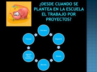 El documento describe la pedagogía de proyectos como un proceso de construcción colectiva y permanente de relaciones, conocimientos y habilidades a través de la resolución de preguntas y problemas del entorno. Este enfoque permite el aprendizaje globalizado y el trabajo en grupo mediante estrategias como la respuesta a problemas e hipótesis planteadas. El proceso de un proyecto implica la elección de un tema, recopilación de información, organización del trabajo y evaluación en un tiempo determinado.