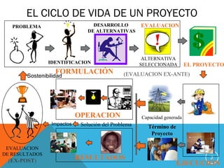 Este documento describe las diferentes fases del ciclo de vida de un proyecto de inversión pública. Explica que la fase de preinversión incluye la elaboración del perfil y estudios de prefactibilidad/factibilidad que culminan con la declaratoria de viabilidad. Luego, la fase de inversión comprende la elaboración del estudio definitivo/expediente técnico y la ejecución del proyecto, culminando con el informe de cierre. Finalmente, define los tipos de proyectos de inversión pública menores y may