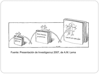 El documento habla sobre investigación científica y proyectos de investigación. Explica que la investigación científica es un proceso sistemático para aumentar los conocimientos sobre un tema. Luego describe las características de un investigador y las diferentes clasificaciones de investigación, como exploratoria, descriptiva, correlacional y explicativa. Finalmente, cubre aspectos como líneas de investigación, producción intelectual, y el planteamiento de problemas e hipótesis en una investigación.