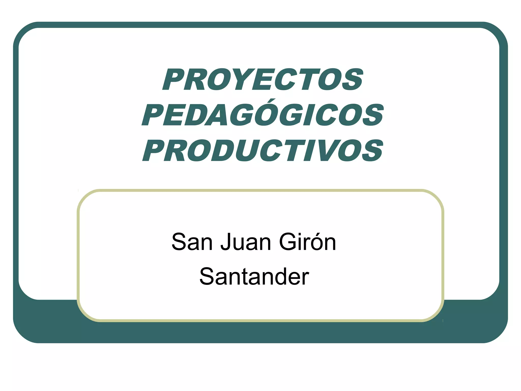 Los proyectos pedagógicos productivos (PPP) son estrategias educativas que articulan la dinámica escolar con la comunidad mediante el emprendimiento y los recursos del entorno para el aprendizaje y desarrollo social. Los PPP ofrecen oportunidades a estudiantes, docentes e instituciones educativas para desarrollar competencias útiles para la vida a través de escenarios productivos que también priorizan el bienestar comunitario y ambiental.
