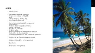 El documento detalla la importancia de los proyectos de construcción sostenible en la República Dominicana, resaltando su impacto positivo en el medio ambiente y la economía. Se presentan ejemplos de edificios sostenibles, como el Agora Mall, que ha obtenido certificación LEED, además de su enfoque en el ahorro de recursos y mejora de la calidad ambiental. Se discuten mitos sobre la sostenibilidad en la construcción y la percepción errónea de que estos proyectos son más costosos a largo plazo.