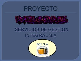 Este documento presenta un proyecto para la empresa Servicios de Gestión Integral S.A. (SGI S.A.), la cual brinda apoyo en la organización de historias clínicas a clínicas, hospitales y centros de salud. El proyecto detalla la misión, visión, objetivos y justificación de SGI S.A., así como los procesos de diagnóstico, clasificación, organización, transferencia y control de documentos que llevaría a cabo. Finalmente, presenta un organigrama de la empresa y detalles sobre competencias