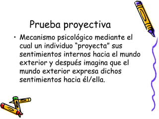 El documento presenta información sobre la Prueba de Apercepción Temática para Niños (CAT), un test proyectivo diseñado para evaluar la personalidad y dinámica psicológica de los niños. Describe las 10 laminas que componen el test, los temas que cada lamina intenta evaluar, y las pautas generales para aplicar, interpretar y diagnosticar posibles trastornos basados en los resultados del CAT.