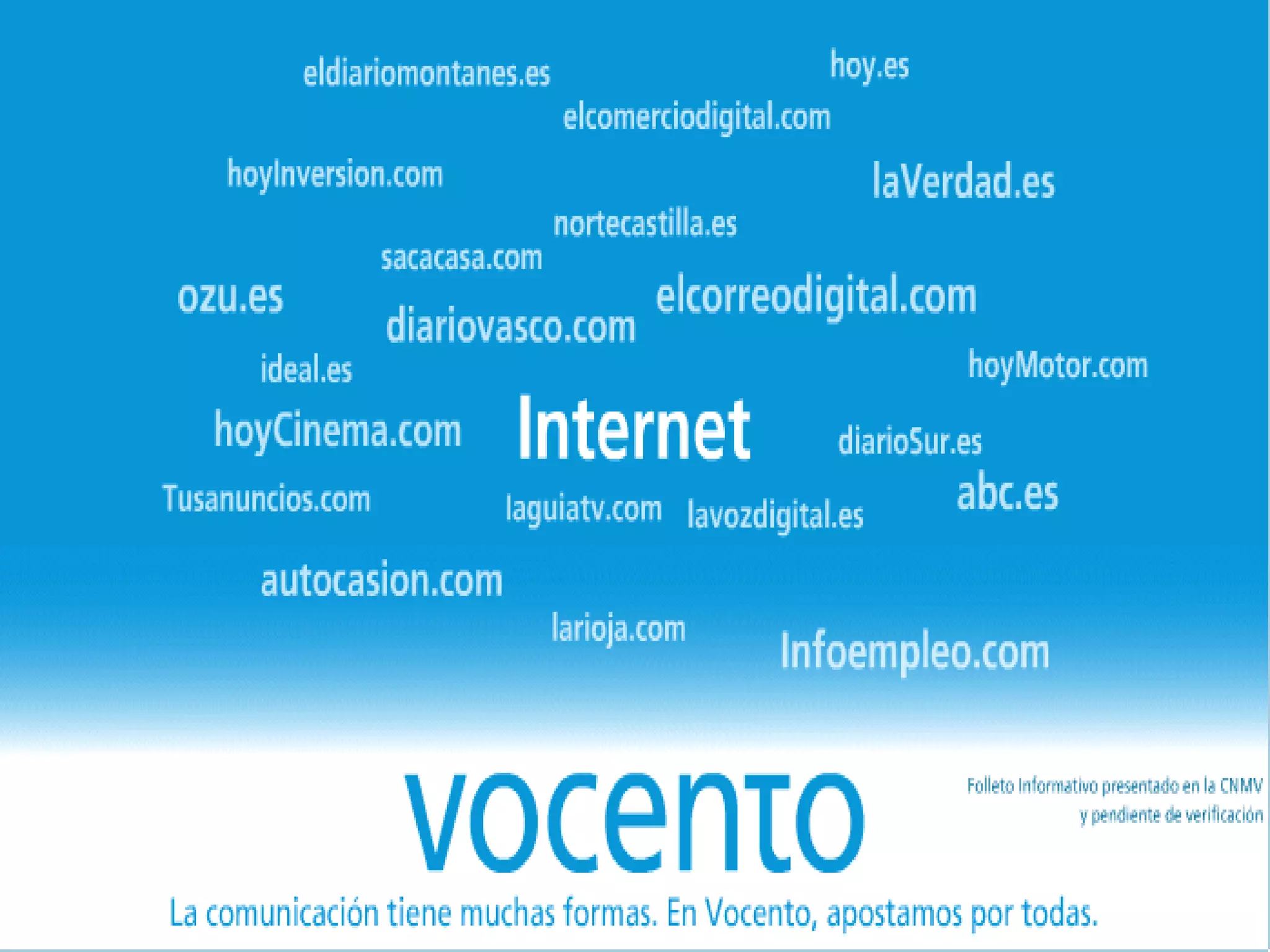 Vocento es uno de los principales grupos de medios de comunicación en España, dominando la prensa, televisión, radio e internet. Controla doce periódicos regionales y el periódico nacional ABC, y participa en revistas y productoras de contenido. También tiene presencia en radio a través de Punto Radio, e internet con portales y ediciones digitales. A nivel internacional opera en Argentina a través de Cimeco, donde publica varios diarios.
