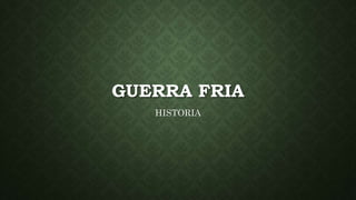 La Guerra Fría fue un enfrentamiento ideológico y político entre los bloques capitalista liderado por Estados Unidos y comunista liderado por la Unión Soviética que duró desde 1947 hasta la disolución de la Unión Soviética en 1991. Aunque no hubo una guerra directa, los conflictos económicos, políticos e ideológicos entre las dos superpotencias marcaron gran parte de la historia de la segunda mitad del siglo XX e influyeron en su deseo de expandir sus respectivos modelos de gobierno.