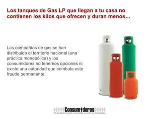 El documento aborda diversas violaciones a los derechos de los consumidores en México, incluyendo el fraude en la venta de gas, altos costos de telefonía celular, comisiones bancarias abusivas y el control mediático que afecta la democracia. También se menciona la falta de regulación sobre la publicidad de comida chatarra que contribuye a la obesidad infantil. Organizaciones como Oxfam México están impulsando un movimiento para proteger los derechos de los consumidores y combatir los monopolios.