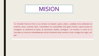 Este documento presenta la carrera de Contabilidad y Auditoría de la Universidad Técnica del Norte. Da la bienvenida a los nuevos estudiantes e invita a inscribirse para obtener una educación de tercer nivel en contabilidad y auditoría con el objetivo de formar profesionales críticos, humanistas y éticos. El objetivo de la carrera es implementar y controlar sistemas de información financiera para sustentar decisiones empresariales. Su misión es formar profesionales analíticos, críticos y