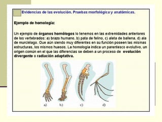 El documento presenta cuatro tipos de pruebas de la evolución: anatómicas, paleontológicas, embriológicas y bioquímicas.