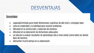 Las pruebas de selección son ampliamente utilizadas y se adaptan a diversas materias, con modalidades que incluyen opciones de respuesta única y múltiple. Se presentan ventajas y recomendaciones para su elaboración, implicando la colaboración de varios autores. El documento destaca la importancia de estos instrumentos en la evaluación educativa.