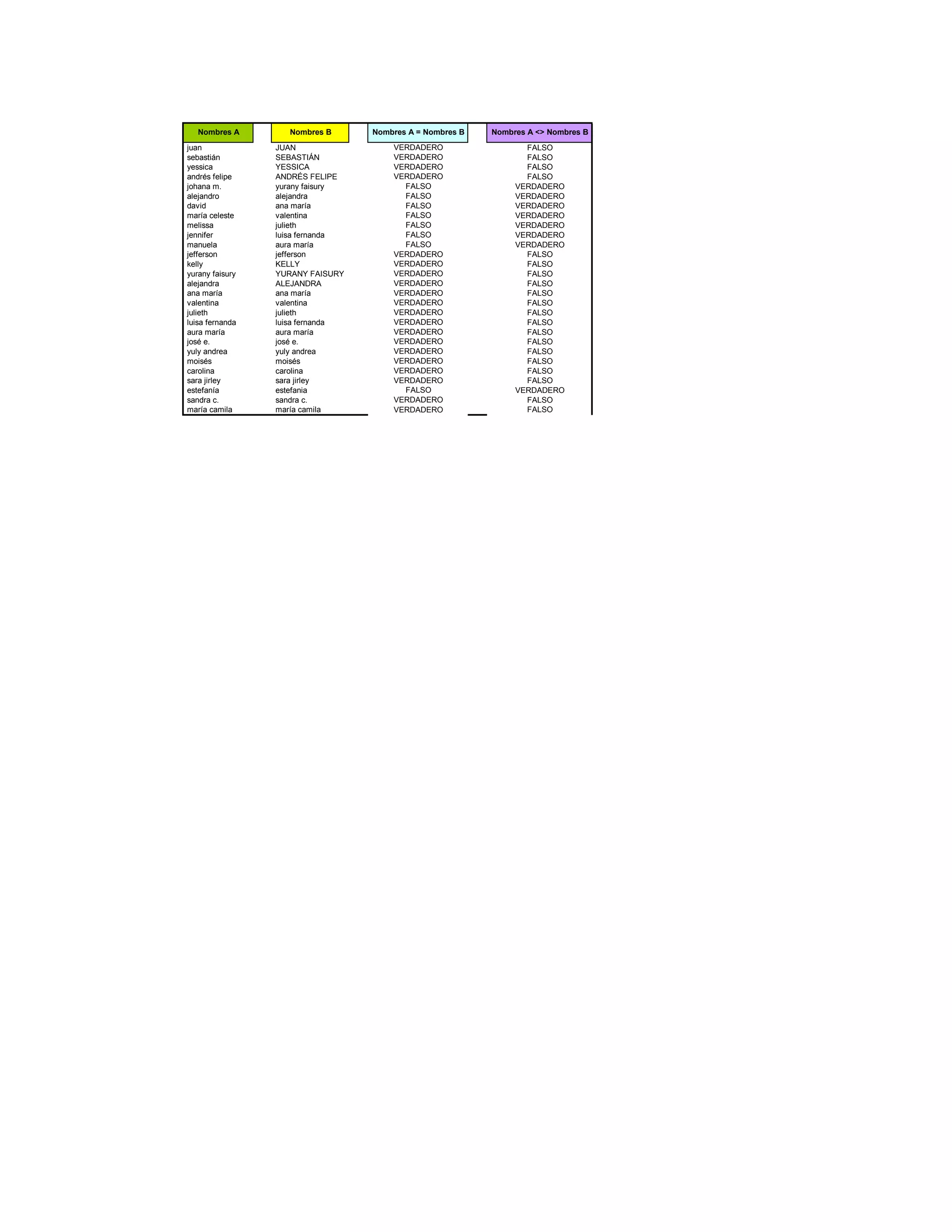 Nombres A Nombres B Nombres A = Nombres B Nombres A <> Nombres B