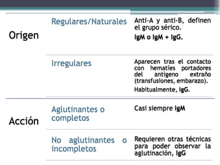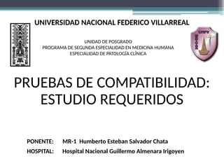 El documento aborda las pruebas de compatibilidad pretransfusionales en medicina, enfatizando la correcta identificación del paciente y la realización precisa de las pruebas necesarias para evitar reacciones adversas. Se describen procedimientos específicos como el estudio de grupos sanguíneos, el escrutinio de anticuerpos irregulares y las pruebas cruzadas, así como diversas técnicas de aglutinación. Se concluye que la automatización de estas pruebas mejora la eficiencia y la precisión en el laboratorio, aunque no siempre aumenta la seguridad en transfusiones.