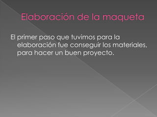 El documento describe los pasos para crear un proyecto que representa un edificio industrial peligroso. Primero consiguieron materiales como cartón y pintura plateada. Luego cortaron y pegaron el cartón en forma cúbica para representar el edificio. Adhirieron pitillos en el centro para simular tuberías térmicas. Finalmente, dibujaron trabajadores en la parte interna para mostrar los peligros de trabajar en altura sin protección adecuada.