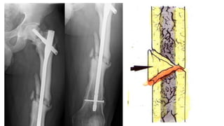 Este documento define la pseudartrosis, su epidemiología, causas, etiopatogenia, manifestaciones clínicas, datos radiográficos, clasificación y tratamiento. La pseudartrosis es la falta de consolidación de una fractura con más de 9 meses sin signos de consolidación. Se clasifica en hipervascularizada u oligotrófica y avascular como defecto óseo, conminuta o atrófica. El tratamiento depende de la clasificación y puede incluir reducción quirúrgica, fijación interna y colocación de injerto óseo.
