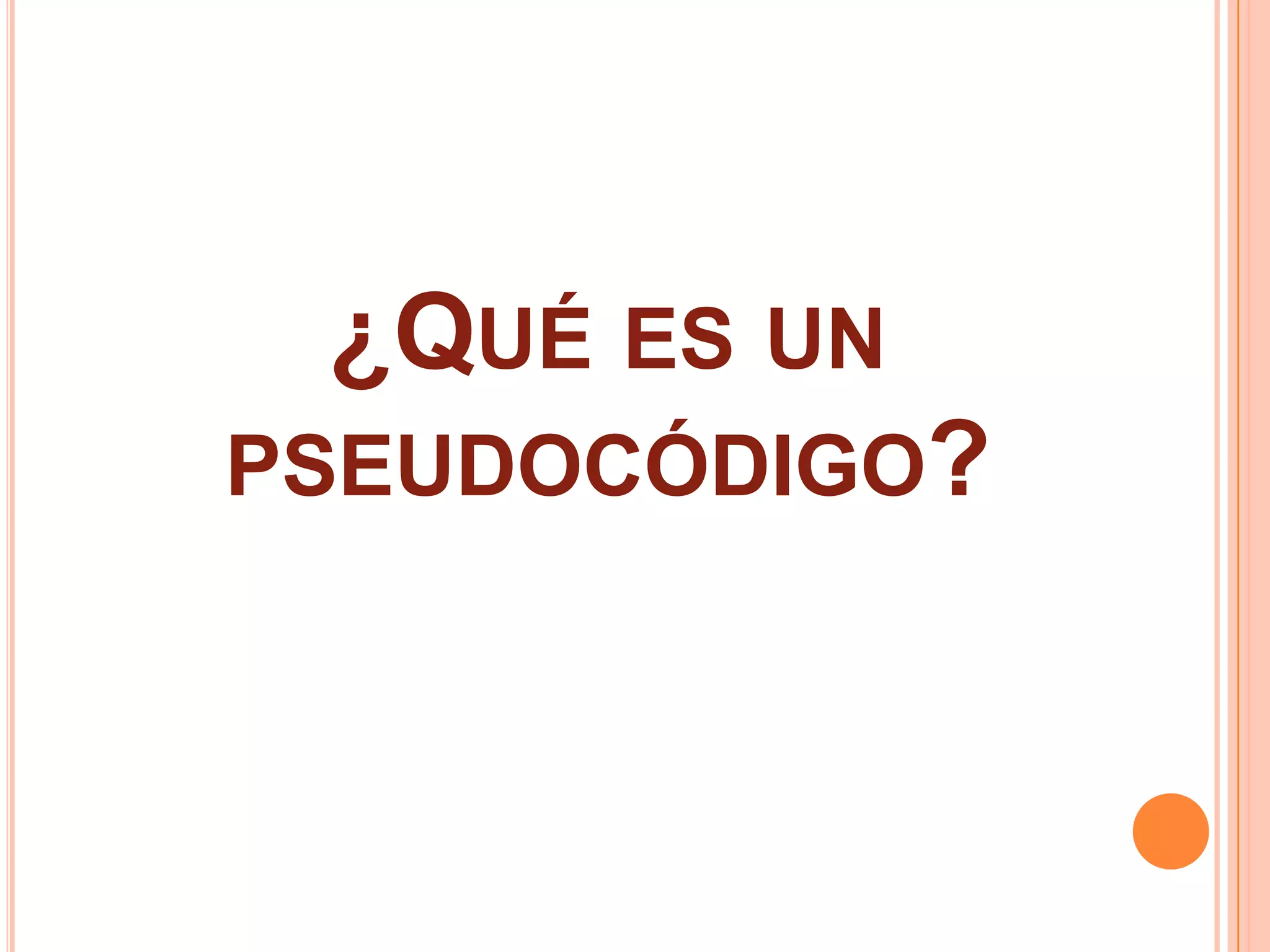 Este documento explica qué es un pseudocódigo y sus características. Define un pseudocódigo como una descripción de algoritmos usando una mezcla de lenguaje común y palabras clave de programación para enfocarse en la solución lógica antes que la implementación en un lenguaje específico. Luego describe los componentes de un pseudocódigo como instrucciones, estructura, tipos de datos y variables. Finalmente, resume los pasos para crear un pseudocódigo.