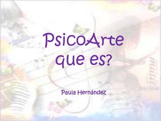 El documento habla sobre el psicoarte, una corriente que propone usar diferentes expresiones artísticas como la música, el teatro o la pintura en intervenciones psicológicas para que los pacientes se abran y expresen el origen de sus síntomas y logren su bienestar. Se implementa con frecuencia en jóvenes con problemas de drogadicción.