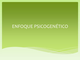 El documento describe el enfoque psicogenético de Jean Piaget. Este enfoque propone que el conocimiento se construye a través de la interacción entre el sujeto y el objeto, en lugar de ser una copia de la experiencia. El desarrollo cognitivo ocurre en etapas cualitativas de mayor equilibrio entre el sujeto y el medio. La teoría de Piaget ha tenido una gran influencia en la educación al proponer el desarrollo como objetivo principal de la enseñanza.